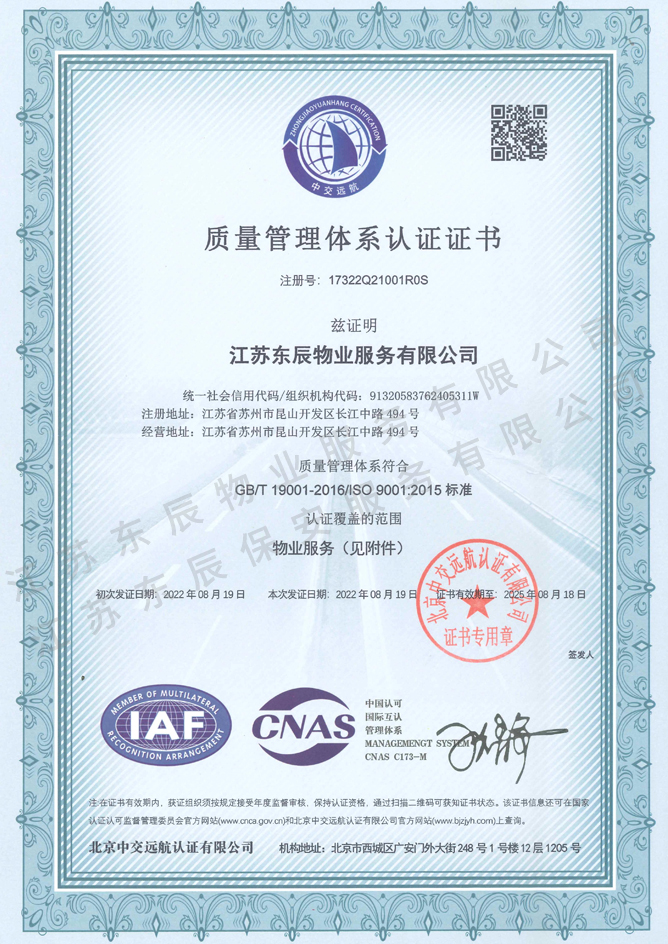 2022-2025年質(zhì)量管理體系認證證書